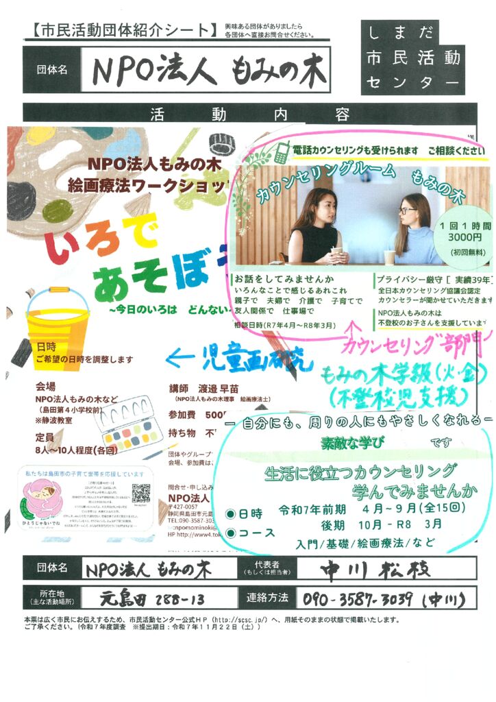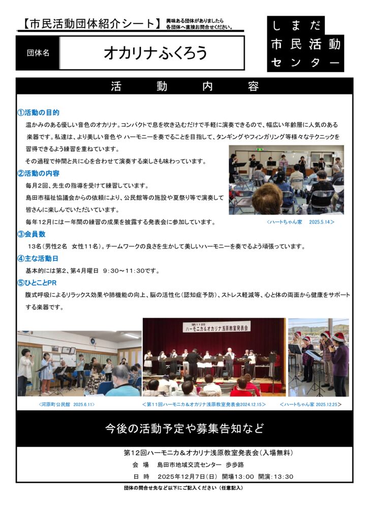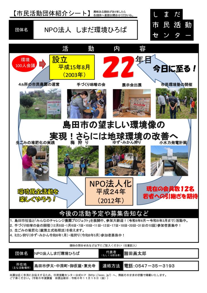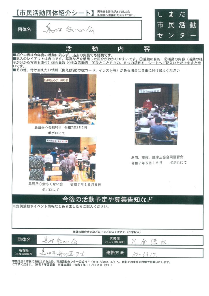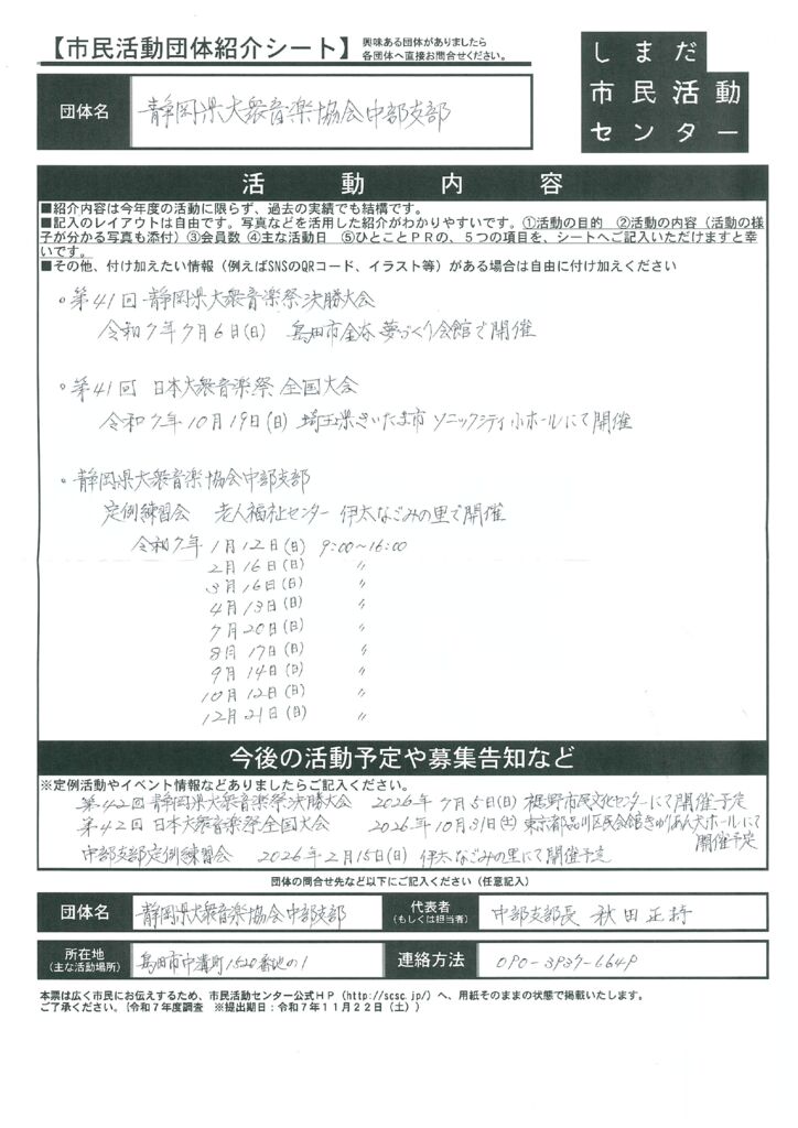 島田市内の市民活動団体ご紹介(市民活動室登録団体)