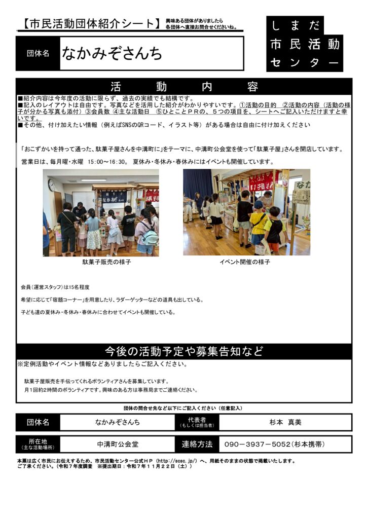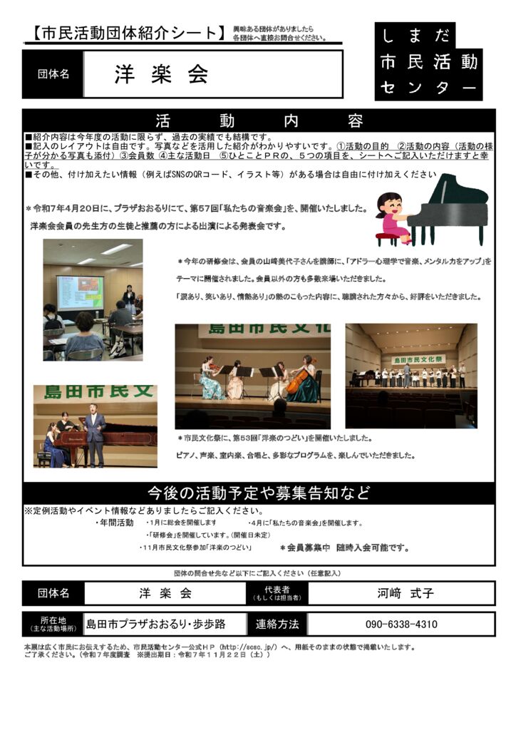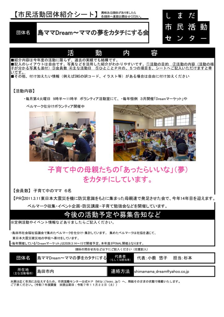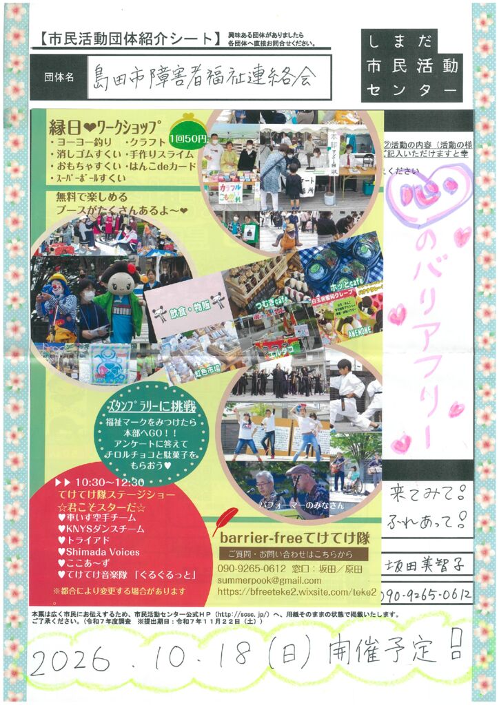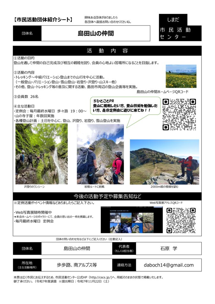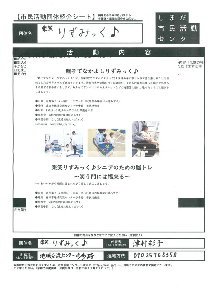島田市内の市民活動団体ご紹介(市民活動室登録団体)