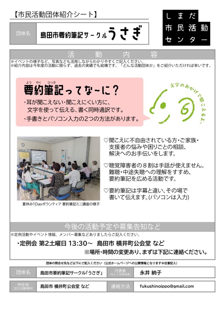 要約筆記サークル うさぎ